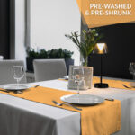 • INSTANT DECOR: Our table runners come in a variety of colors and seamlessly match our kitchen towels, aprons, napkins,placemats and tablecloths, making them an ideal complement to your kitchen decor. They work harmoniously to elevate the dining table’s aesthetic, infusing a touch of elegance and regality with the use of Calicot table runners.