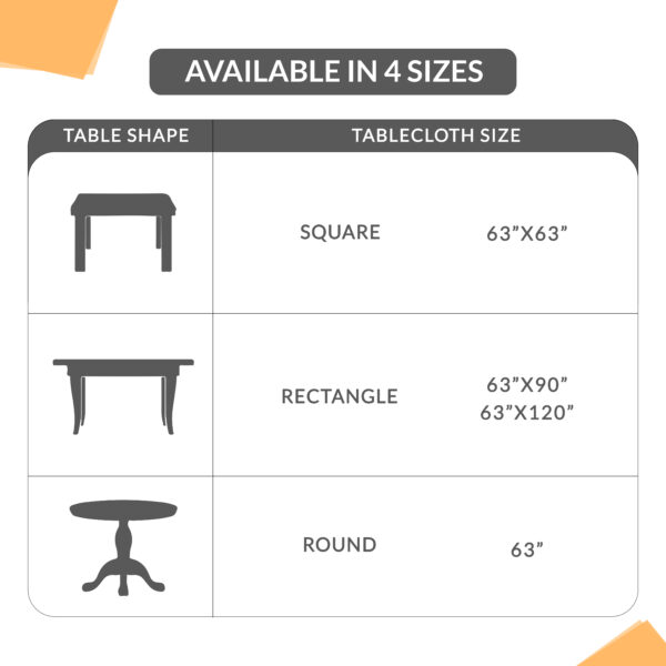 100% COTTON : A 100% cotton tablecloth is the epitome of natural elegance and versatility. This tablecloth exudes a timeless charm and offers practical benefits. Its soft and breathable qualities make it an ideal choice for both casual and formal dining occasions.Whether you’re hosting a festive dinner party or enjoying a quiet family meal, a 100% cotton tablecloth combines functionality with aesthetics, elevating your dining experience and making your table an inviting focal point.