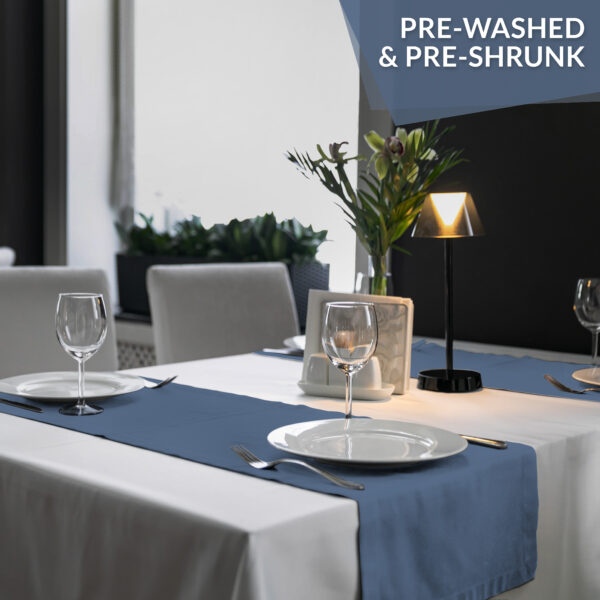 • INSTANT DECOR: Our table runners come in a variety of colors and seamlessly match our kitchen towels, aprons, napkins,placemats and tablecloths, making them an ideal complement to your kitchen decor. They work harmoniously to elevate the dining table’s aesthetic, infusing a touch of elegance and regality with the use of Calicot table runners.
