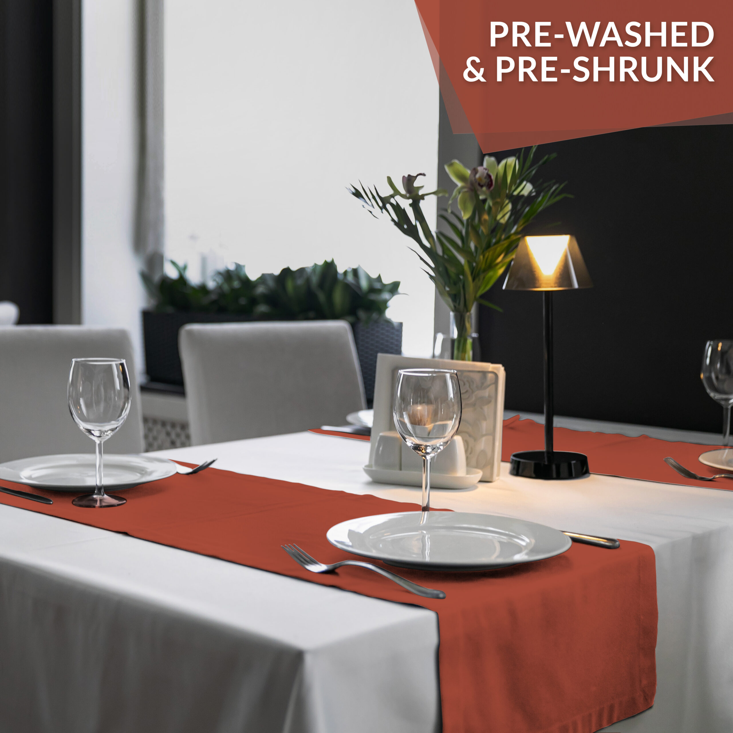INSTANT DECOR: Our table runners come in a variety of colors and seamlessly match our kitchen towels, aprons, napkins,placemats and tablecloths, making them an ideal complement to your kitchen decor. They work harmoniously to elevate the dining table’s aesthetic, infusing a touch of elegance and regality with the use of Calicot table runners.