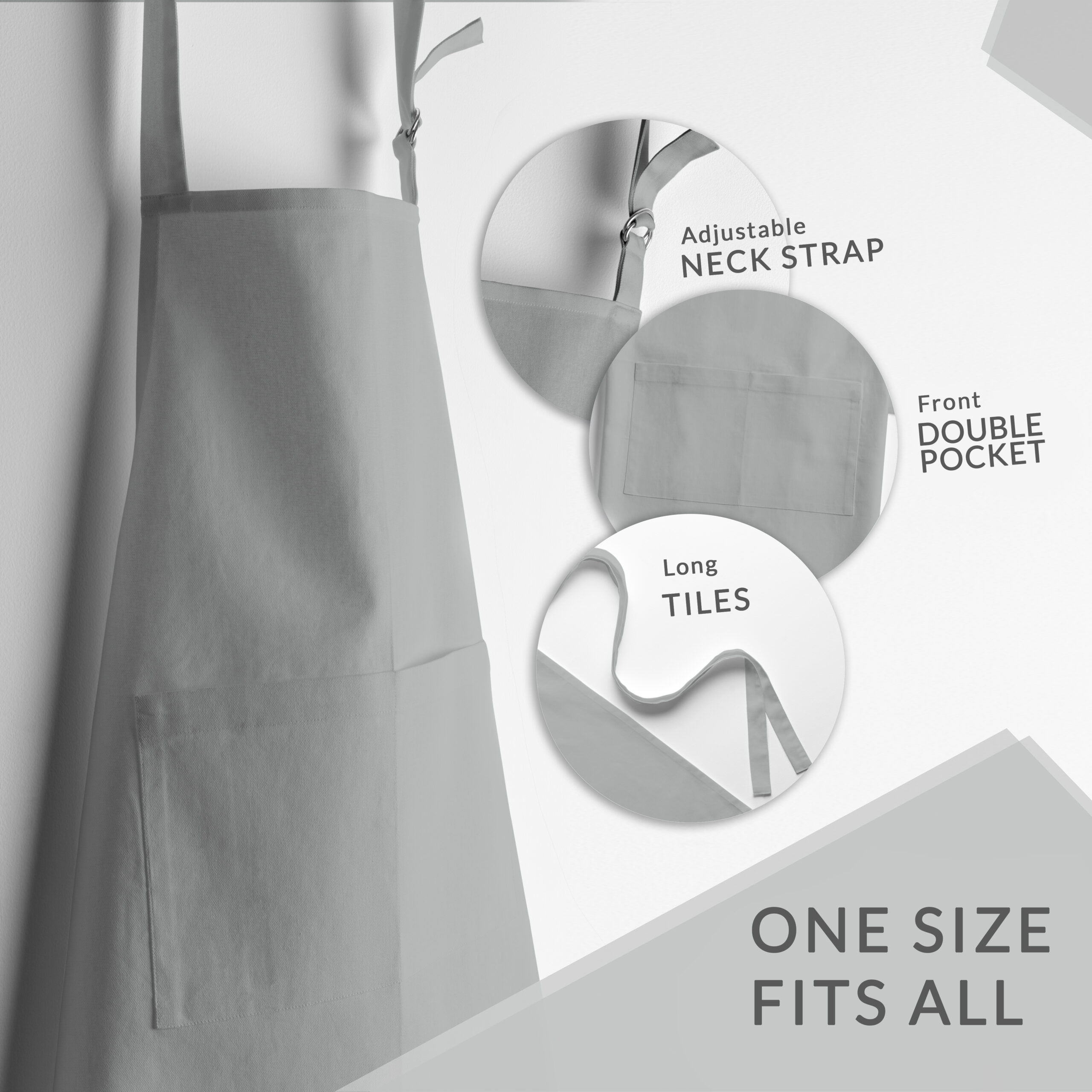 • EASY CARE: Each apron is simple to care for. Machine washable, using a warm cycle setting without bleach; tumble dry low; iron as needed