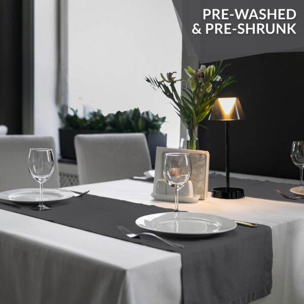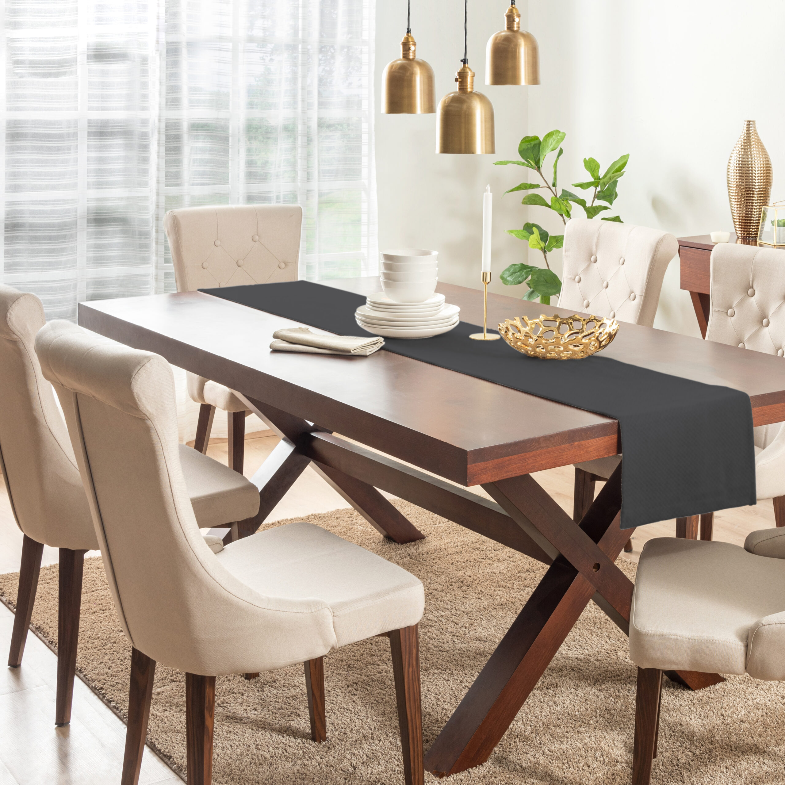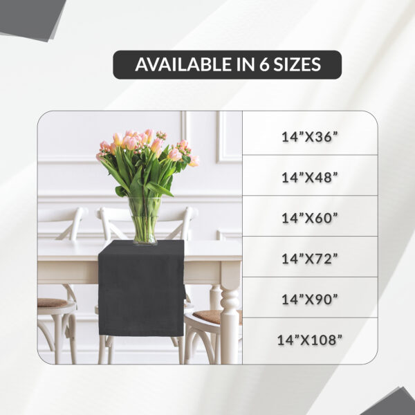 • INSTANT DECOR: Our table runners come in a variety of colors and seamlessly match our kitchen towels, aprons, napkins,placemats and tablecloths, making them an ideal complement to your kitchen decor. They work harmoniously to elevate the dining table’s aesthetic, infusing a touch of elegance and regality with the use of Calicot table runners.