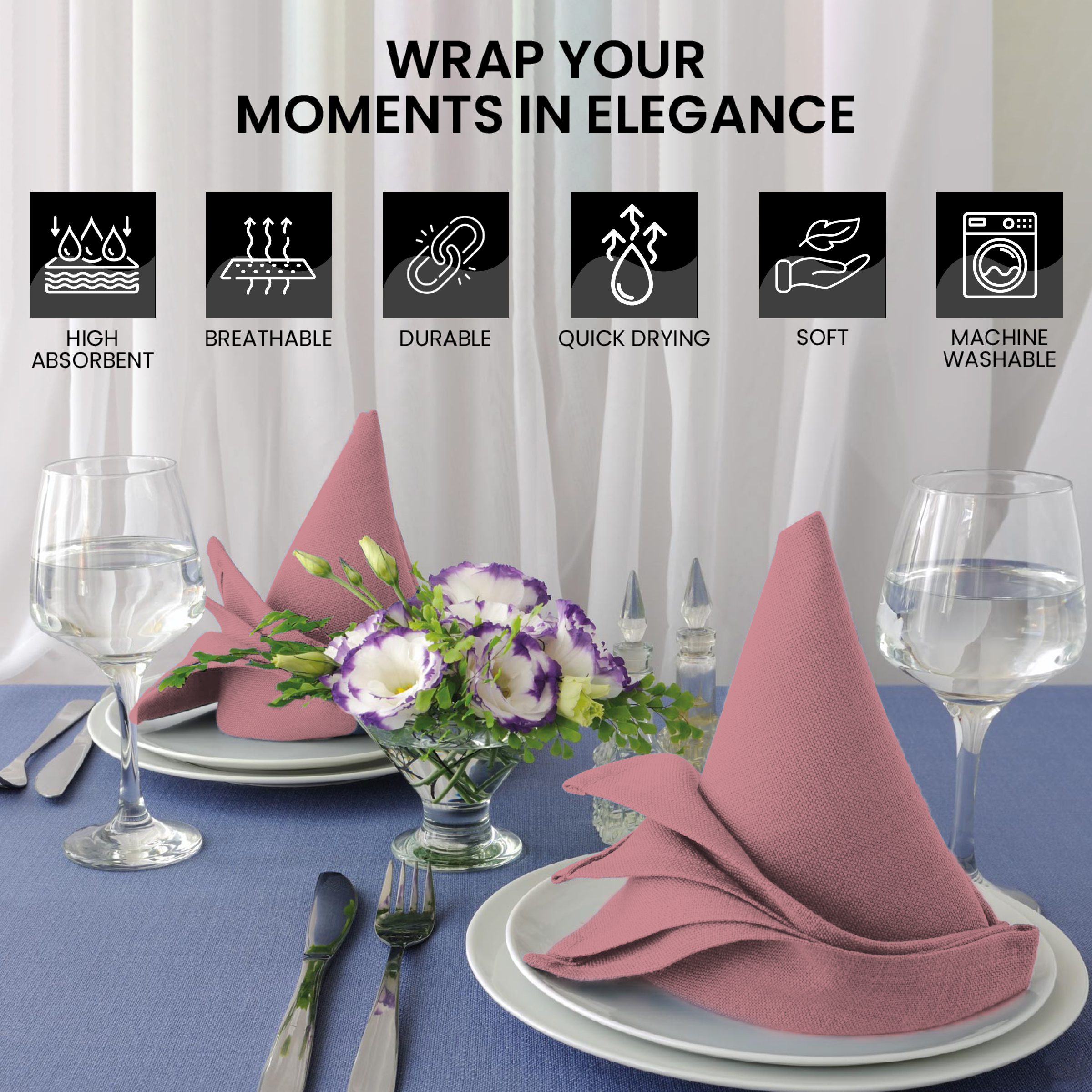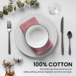 CARE INSTRUCTIONS:These durable Napkins Cloth combine style and versatility with practicality. They are not only washable and reusable but also prewashed, guaranteeing that they maintain their quality and won’t shed threads even after multiple machine washes with like colors in normal water. Care for them is effortless; machine wash warm, avoid bleach, tumble dry low, and warm iron if needed.