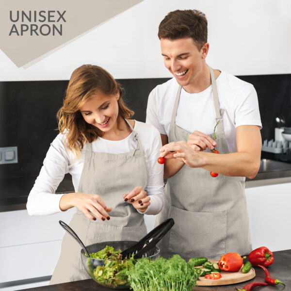 • 100% COTTON: This apron is manufactured from 100% pure cotton, assuring comfort, durability, and lightweight for long hours in the kitchen, restaurant, home, or garden