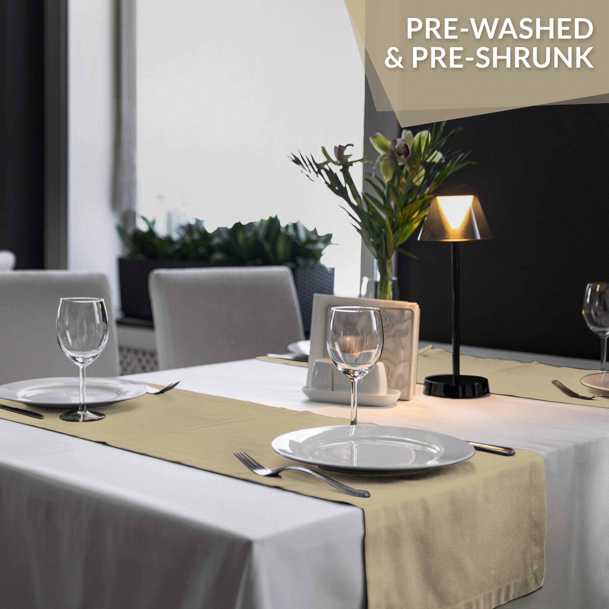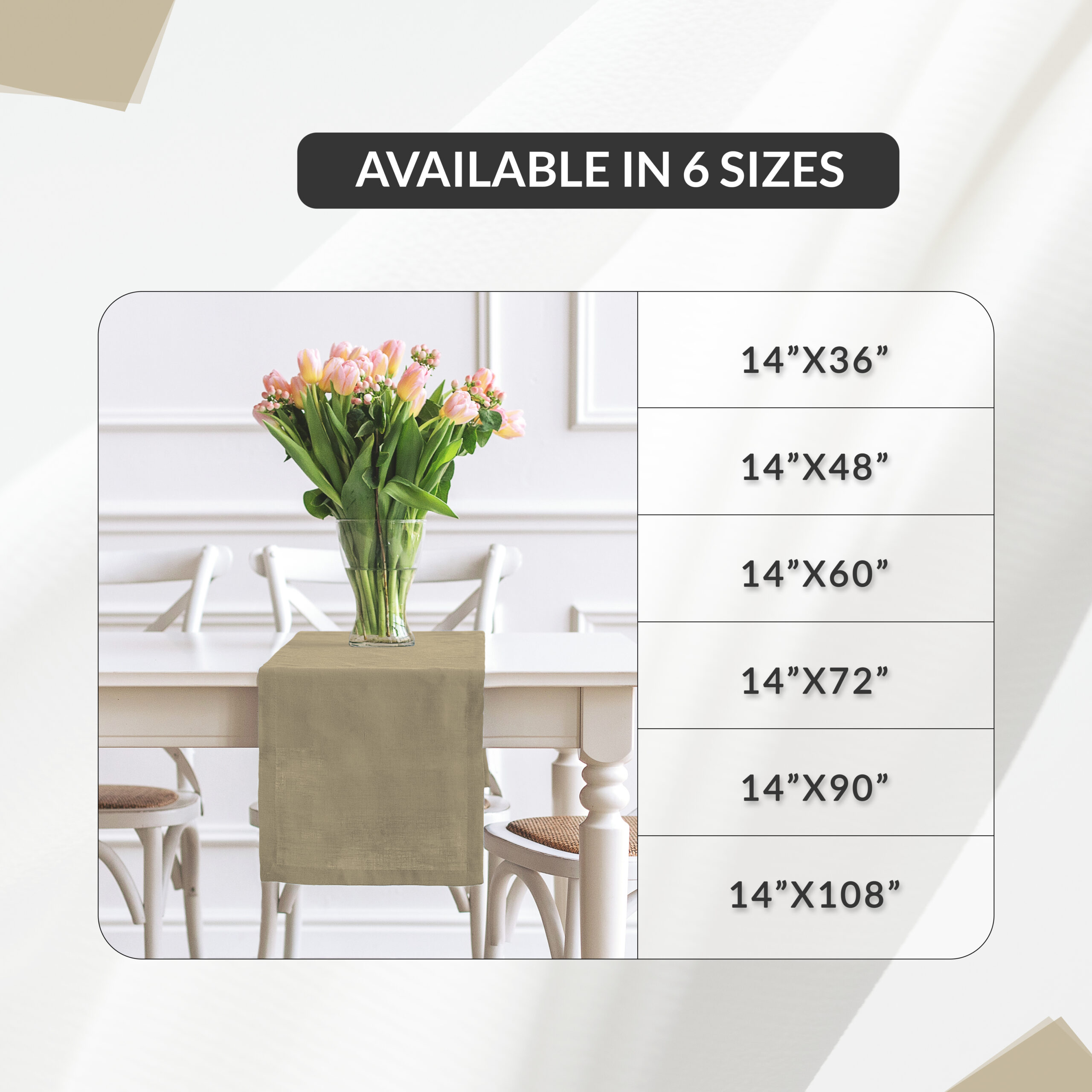 INSTANT DECOR: Our table runners come in a variety of colors and seamlessly match our kitchen towels, aprons, napkins,placemats and tablecloths, making them an ideal complement to your kitchen decor. They work harmoniously to elevate the dining table’s aesthetic, infusing a touch of elegance and regality with the use of Calicot table runners.