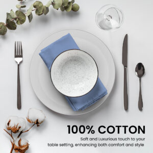 EXCELLENT SEWING TECHNIQUE: Carefully cut and sewn,they boast secure stitched corners and a generous hem,showcasing the epitome of high-quality craftsmanship.With their precisely tailored mitered corners,these napkins embody excellence in sewing. The importance of such precise and skillful work lies in the durability and elegance it brings to each dining experience.Use for everyday meals or special occasions, the secure stitching ensures that these napkins maintain their pristine appearance.