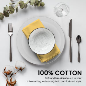 HIGH QUALITY MATERIAL: Cloth Napkins, meticulously crafted from 100% Cotton Material. Soft, absorbent, and exceptionally durable, these Dinner Napkins elevate your dining experience to new heights. Each touch brings a delightful sensation, with a gentle yet cozy feel on your dining table. The high-quality cotton material ensures longevity, making them a reliable choice for your dining needs. Experience the pleasure of reusable dining essentials that embrace both practicality and sophistication.