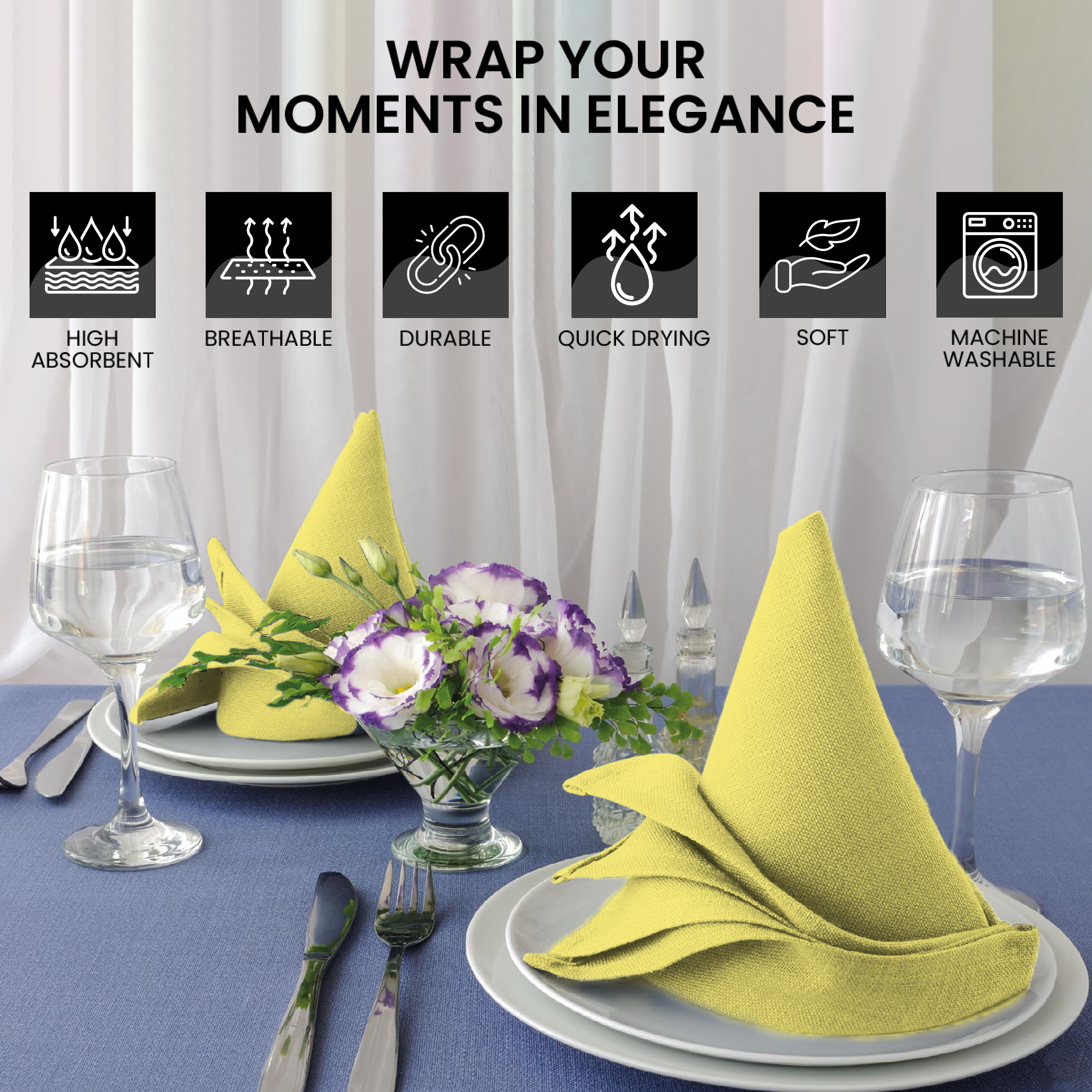 CARE INSTRUCTIONS:These durable Napkins Cloth combine style and versatility with practicality. They are not only washable and reusable but also prewashed, guaranteeing that they maintain their quality and won’t shed threads even after multiple machine washes with like colors in normal water. Care for them is effortless; machine wash warm, avoid bleach, tumble dry low, and warm iron if needed.