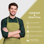 • 100% COTTON: This apron is manufactured from 100% pure cotton, assuring comfort, durability, and lightweight for long hours in the kitchen, restaurant, home, or garden