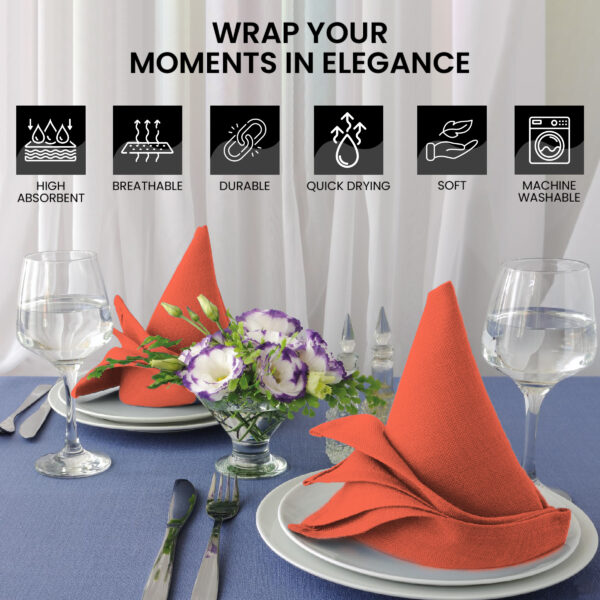 • CARE INSTRUCTIONS:These durable Napkins Cloth combine style and versatility with practicality. They are not only washable and reusable but also prewashed, guaranteeing that they maintain their quality and won’t shed threads even after multiple machine washes with like colors in normal water. Care for them is effortless; machine wash warm, avoid bleach, tumble dry low, and warm iron if needed.