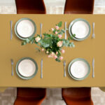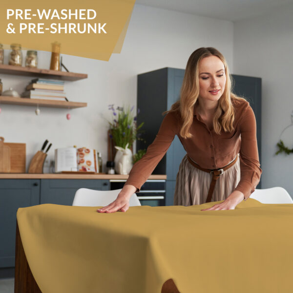 WASH CARE: Maintaining this tablecloth is a breeze. Just machine wash it in cold water with a gentle detergent, avoiding bleach, and tumble dry on low heat. For a wrinkle-free look, iron on a cotton setting. Thanks to its 100% cotton fabric, it may shrink minimally but becomes softer with each use. Plus, it’s fade-resistant and lint-free, ensuring long-lasting quality and an effortlessly elegant dining experience.